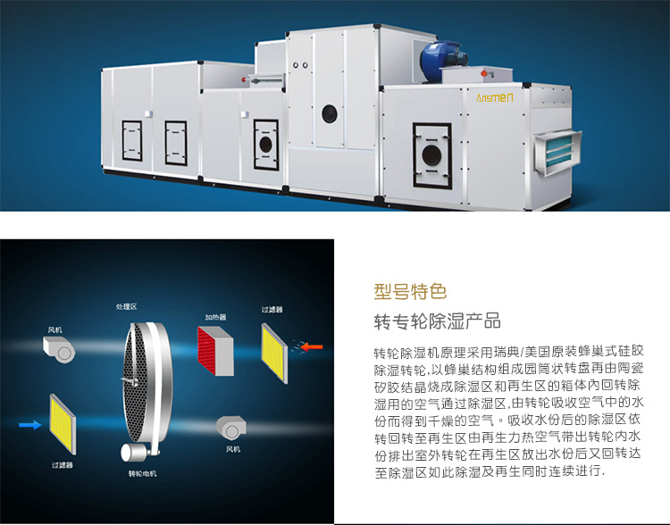安詩曼是專業轉輪除濕機生產廠家,主要產品有工業除濕機,高溫烘干機,轉輪除濕機,低溫除濕機,吊頂除濕機,商用抽濕機,商用除濕機,工業抽濕機,工業干燥機等產品